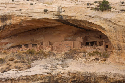 Сегодня я явно ищу окольных путей. И оказываюсь на Тропе Предков. Для разминки иду в поход в Батлер Вош Руинс к древним жилищам индейцев племени кайента, относившихся к народу анасази (пуэбло). Они жили здесь примерно до 1300 года, а затем навсегда покинули эти земли. Вот тридцатиквартирный дом древних индейцев, выдолбленный в скалах. Перед домом находится «кива» - индейская вечевая площадь.