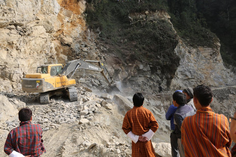 Но не менее успокаивает и спокойствие и терпения бутанцев. Ведь не только я жду. Все ждут. Вон какой уже хвост выстроился. А они только перешучиваются. Бутанцы... хлебом не корми - дай поржать. Любой анекдот, любую шутку примут на ура; и сами ответят тем же. Улыбки... Хохот... Сколько мы тут ждем? Три часа? А сколько еще ждать? Ах, сложно сказать... ну да, конечно. Но любой мой скептицизм в отношении способности бутанского правительства довести реконструкцию шоссе до победного конца к концу этого года бутанцы мягко, но решительно гасят: "Король сказал - король сделал".
